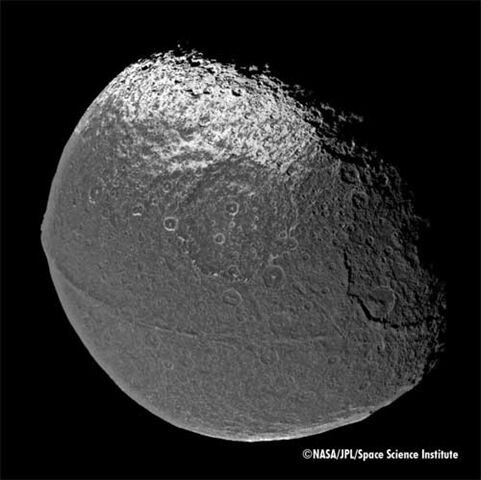 謎の反りあがった壁が中央にあることからも未だに人口天体なんじゃないかと言われている謎の衛星。
