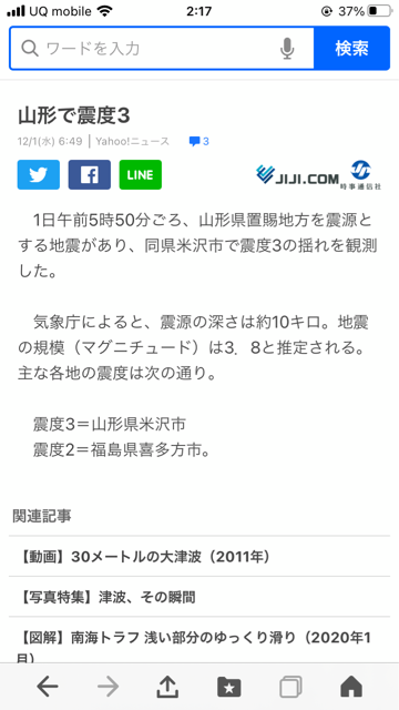 たった1日、約24時間で3箇所で震度3は心配になりますね。