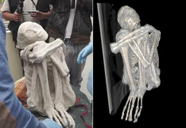 2017年に盗掘者によって、奇妙な人型のミイラ化した遺体が3体発見されました。